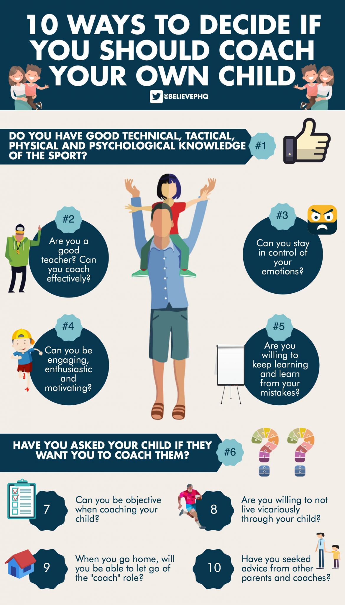 There have been many debates about this over the years and without a doubt the number of volunteers in grassroots sport would be substantially down if parents did not coach their own children. However, have you ever really thought about what it takes to make this a successful venture and if you are in any doubt perhaps this infographic above can help.