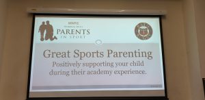 We delivered two 90 minute sessions to groups of parents with the sessions providing lots of interactions and space for parents to discuss some of the challenges that they currently face and lie ahead for them, as well as taking a moment to reflect and be proud of what they and their children have achieved together so far on their sporting journey.