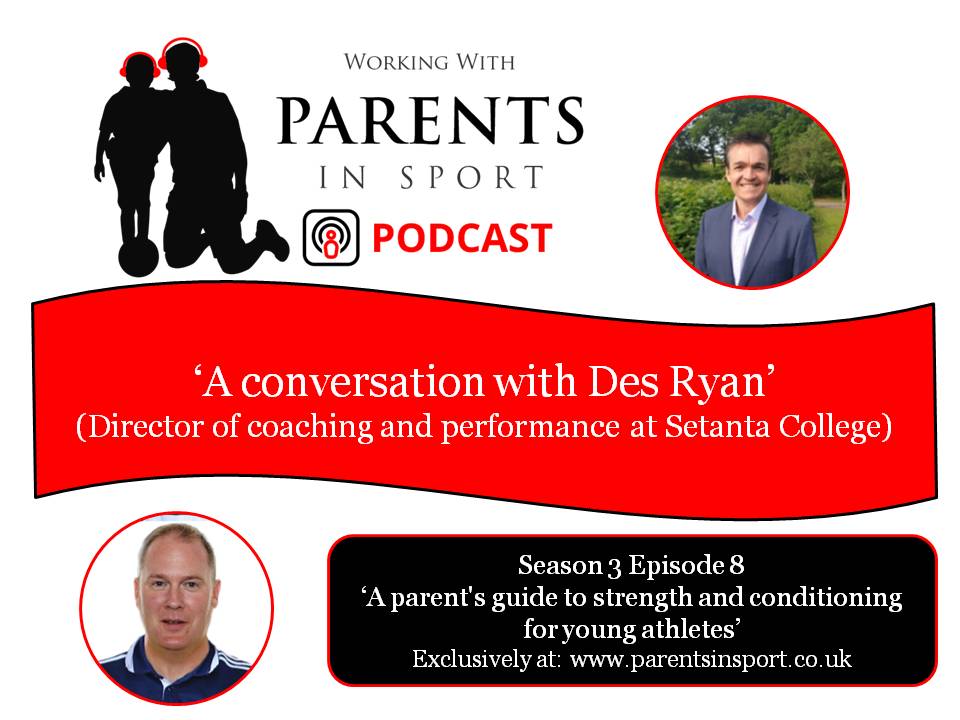In this episode director of coaching and performance at Setanta College Des Ryan joins Gordon MacLelland to discuss strength and conditioning for young athletes, how we can best support our children and dispels a few myths along the way.